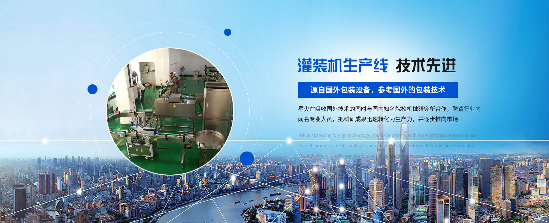 源自國外包裝設備,參考國外的包裝技術,與國內(nèi)知名院校機械研究所合作。灌裝機等設備已擁有十多項產(chǎn)品知識產(chǎn)權(quán)和專利技術